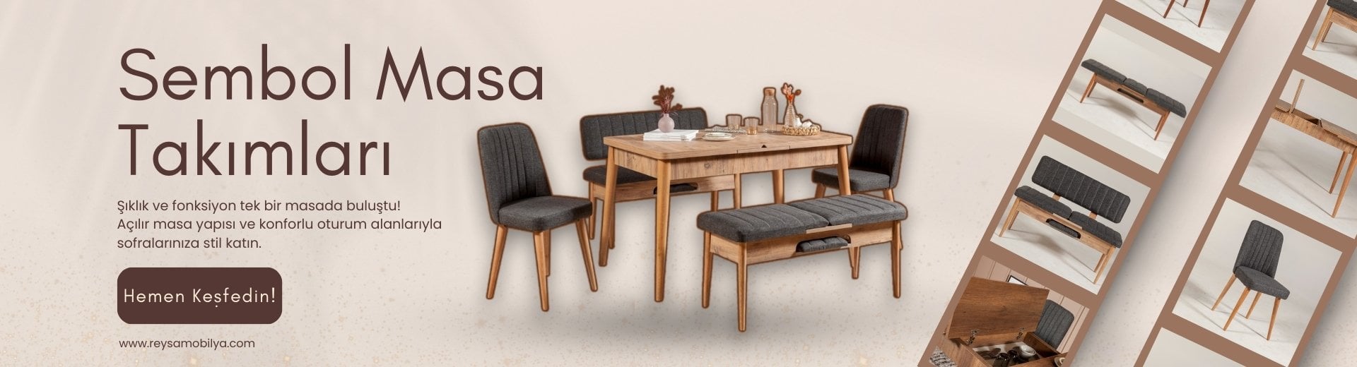 Sembol masa takımı modellerimiz, kelebek açılır masa sistemleri, açılabilir bank seçenekleri ve gürgen ağacından üretilmiş sağlam ayak yapısıyla, kalabalık sofralar için konforlu ve uzun ömürlü bir çözüm sağlarken, aynı zamanda modern tasarımı ve fonksiyonel detaylarıyla dikkat çeker.