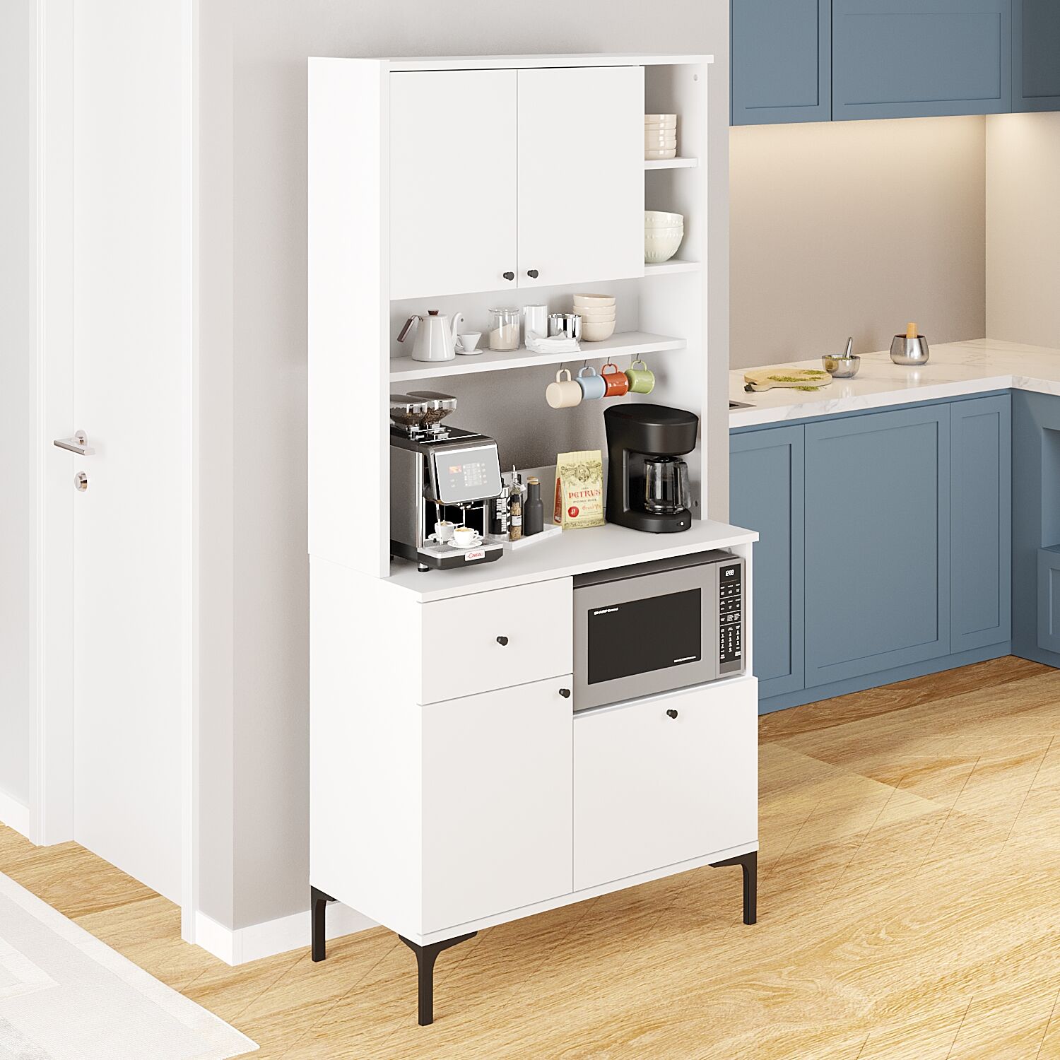 Mutfağınızda ya da salonunuzda hem şık hem de işlevsel bir dokunuş arıyorsanız, mikrodalga alanına sahip kahve köşesi dolabımız tam size göre!