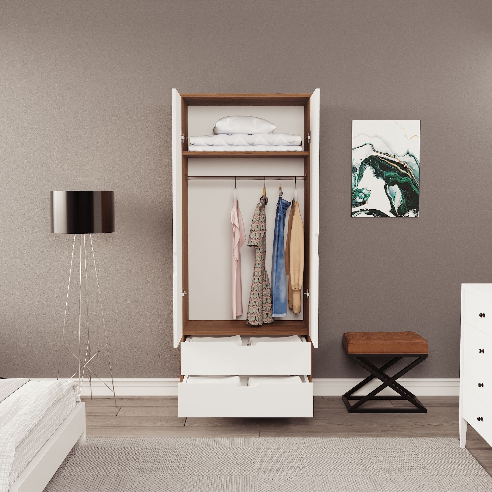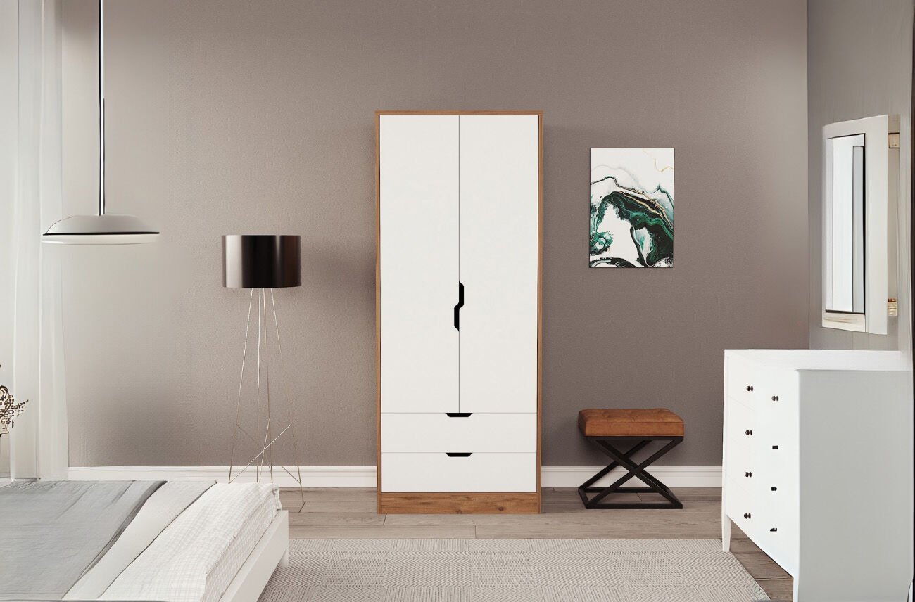 Lina 2 Kapak 2 Çekmeceli Gardırop Atlantik-Beyaz