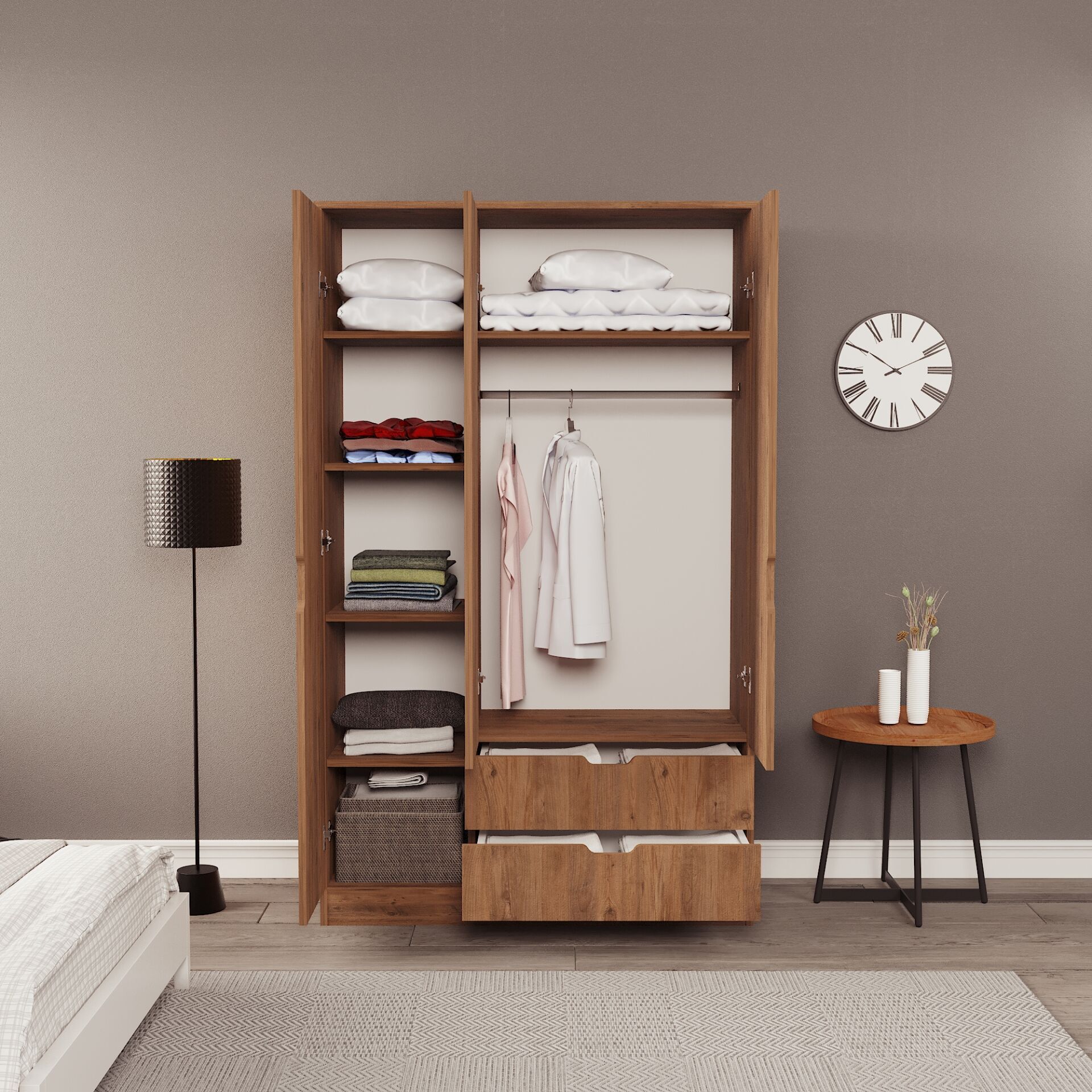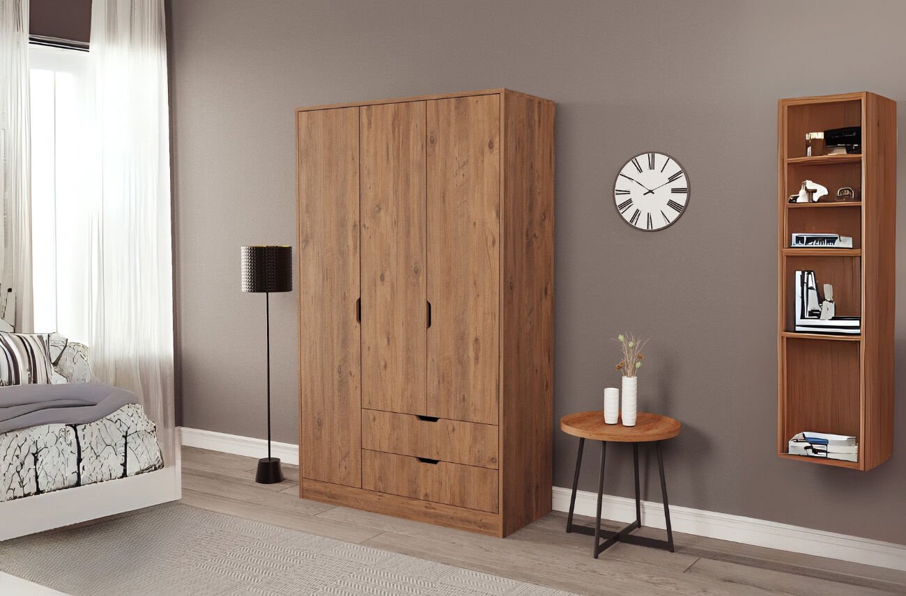 Lina 3 Kapak 2 Çekmeceli Gardırop Atlantik-Atlantik