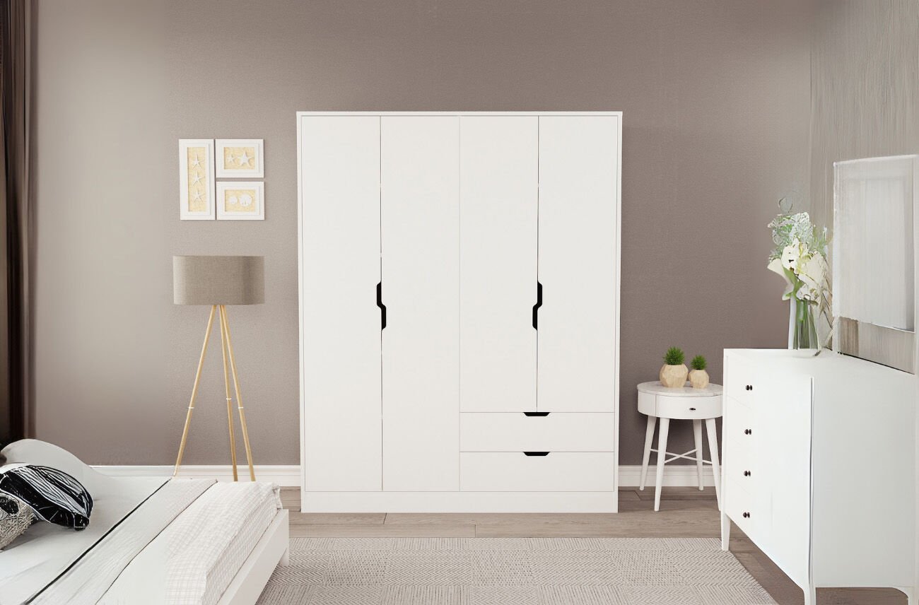 Lina 4 Kapak 2 Çekmeceli Gardırop Beyaz-Beyaz