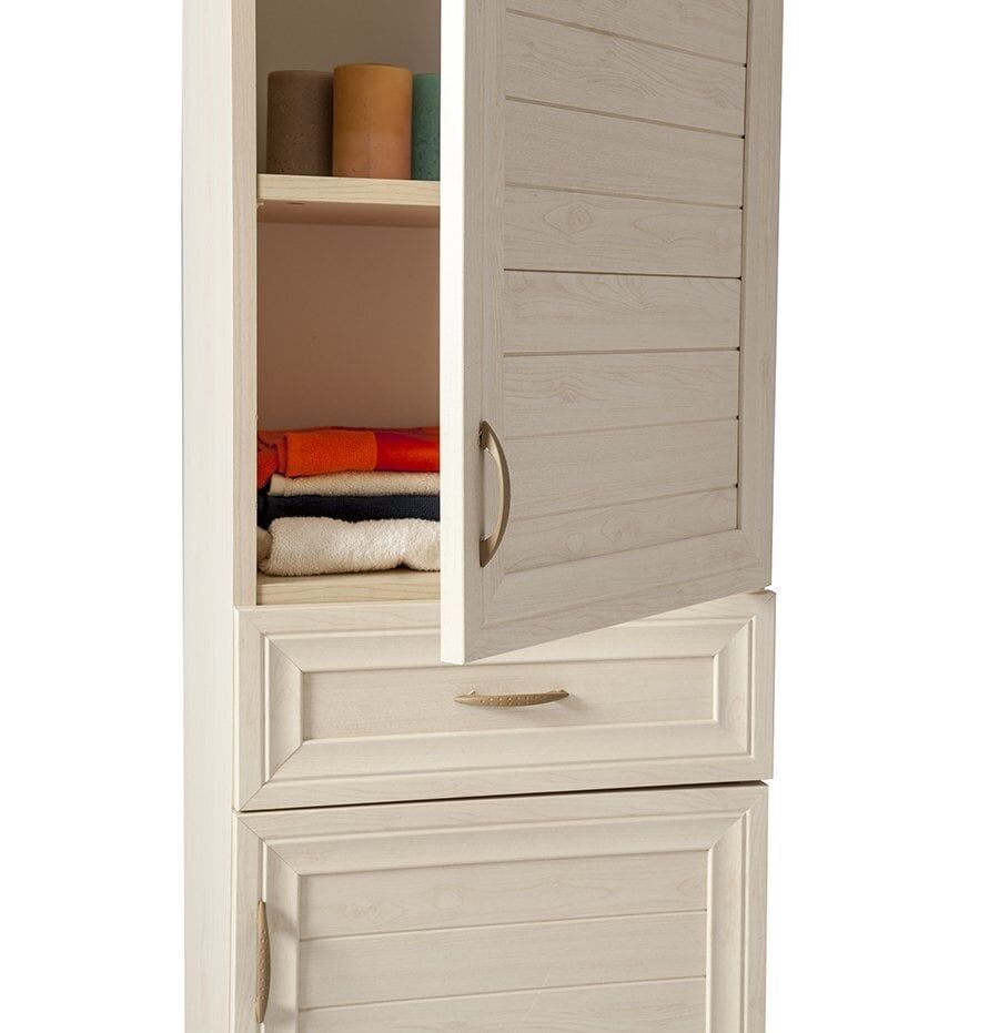 Minima Tory çok amaçlı dolabımızın gövdesi 18 mm melamin kaplı suntalam malzemeden üretilmiştir. Dolap kapaklarında 18 mm MDF malzemesi kullanılmıştır. Kapaklar panjur modeldir. Ürünümüzün alt ve üst tablası 1 mm kalınlığında PVC diğer tüm bölgeler 0,4 mm PVC kenar bant kullanılmıştır. Kullandığımız PVC sağlık koşullarına uygundur.