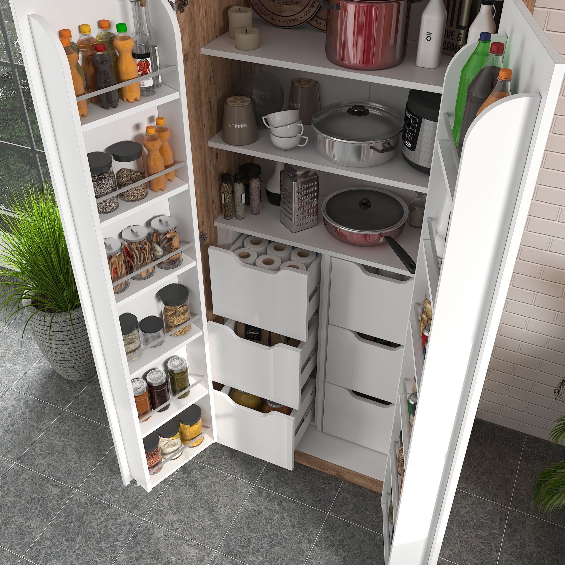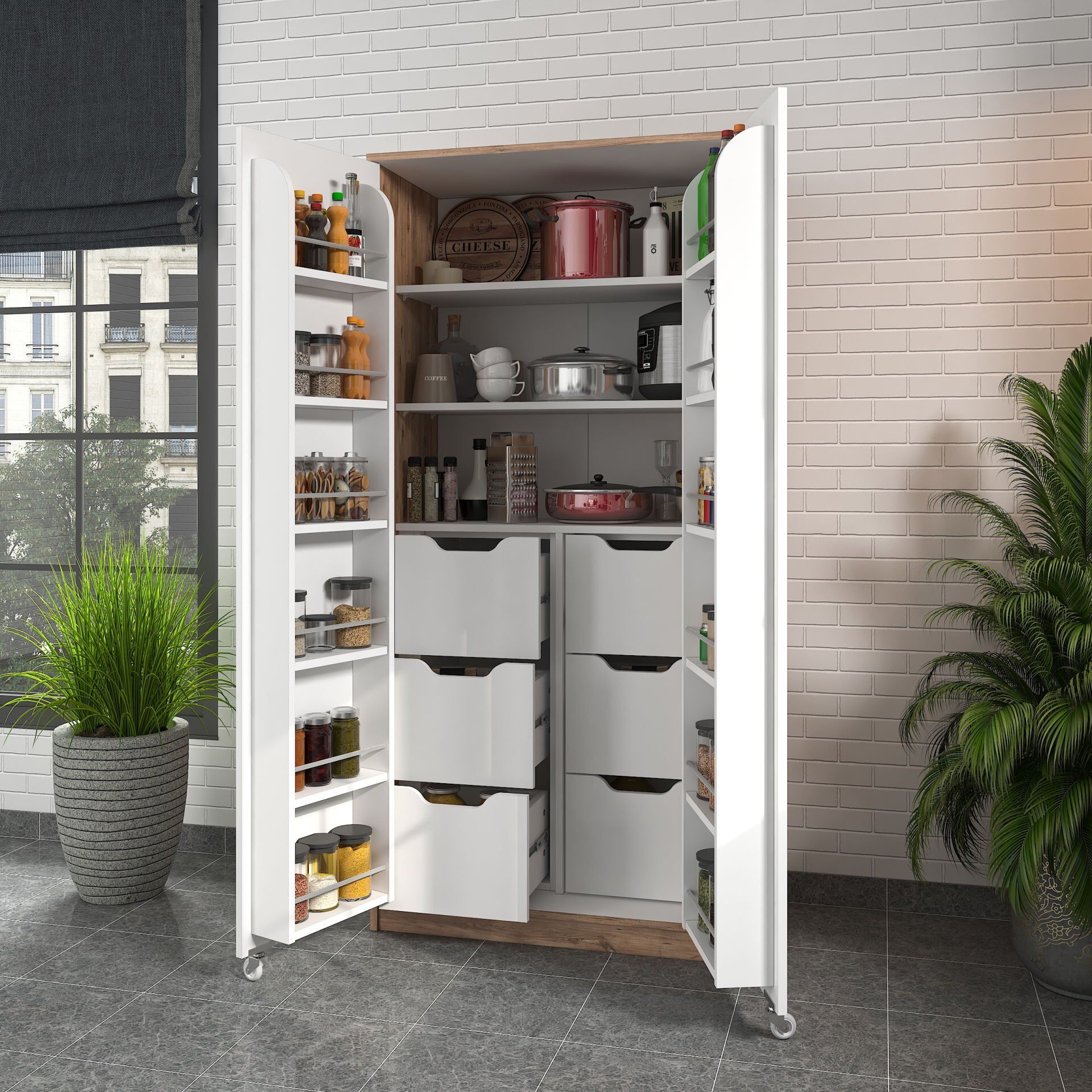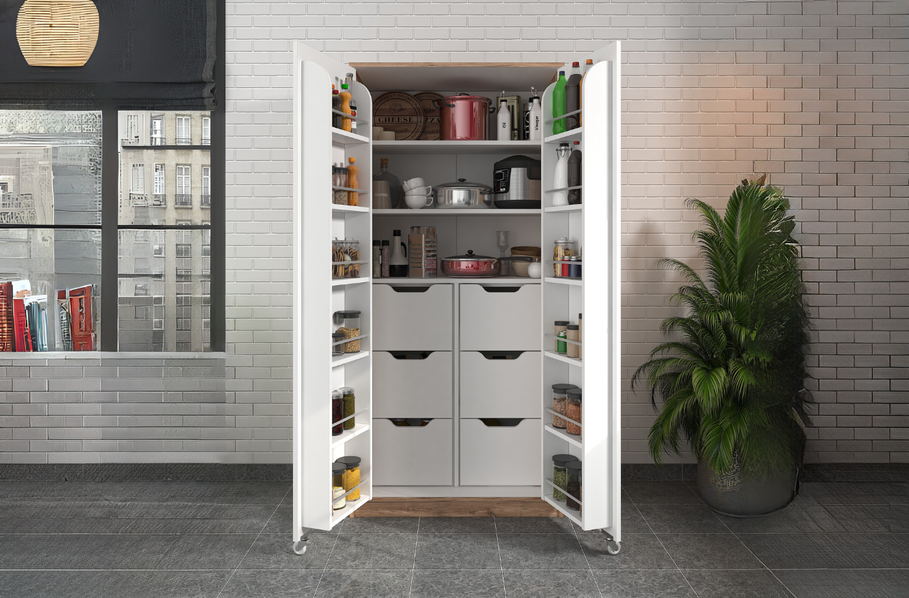 Depolama alanına mı ihtiyacınız var? Molina kiler dolabı geniş iç hacmiyle tam size göre. Kapak içlerindeki rafları sayesinde kavanoz gibi eşyalarınızı saklayabilir ve ihtiyacınız olduğunda rahatça ulaşabilirsiniz. Kapaklarındaki tekerlekler sayesinde kolayca açıp kapanabilen yapısı size konfor ve güvenlik sağlar.