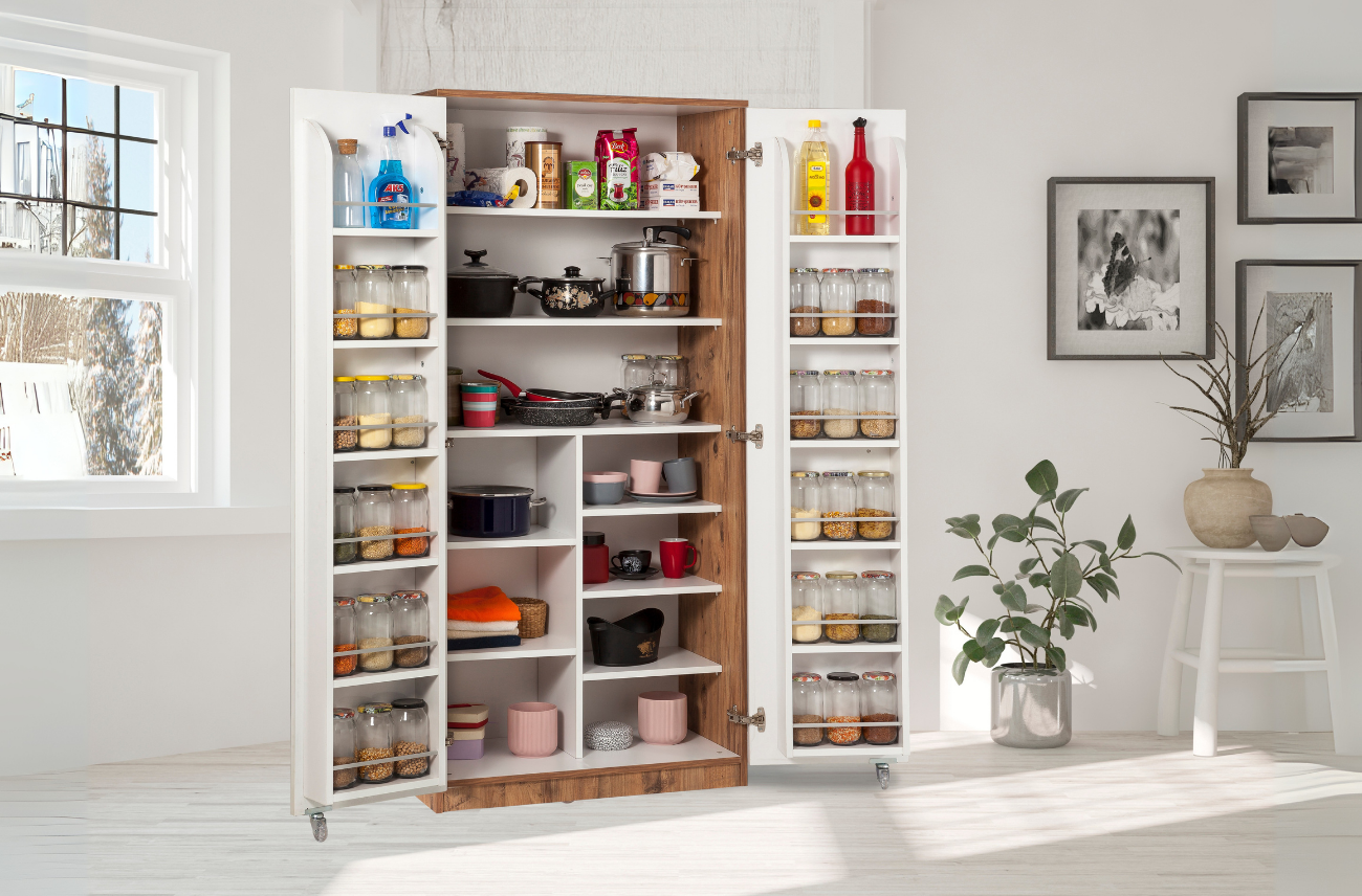 Depolama alanına mı ihtiyacınız var? Molina kiler dolabı geniş iç hacmiyle tam size göre. Kapak içlerindeki rafları sayesinde kavanoz gibi eşyalarınızı saklayabilir ve ihtiyacınız olduğunda rahatça ulaşabilirsiniz. Kapaklarındaki tekerlekler sayesinde kolayca açıp kapanabilen yapısı size konfor ve güvenlik sağlar.