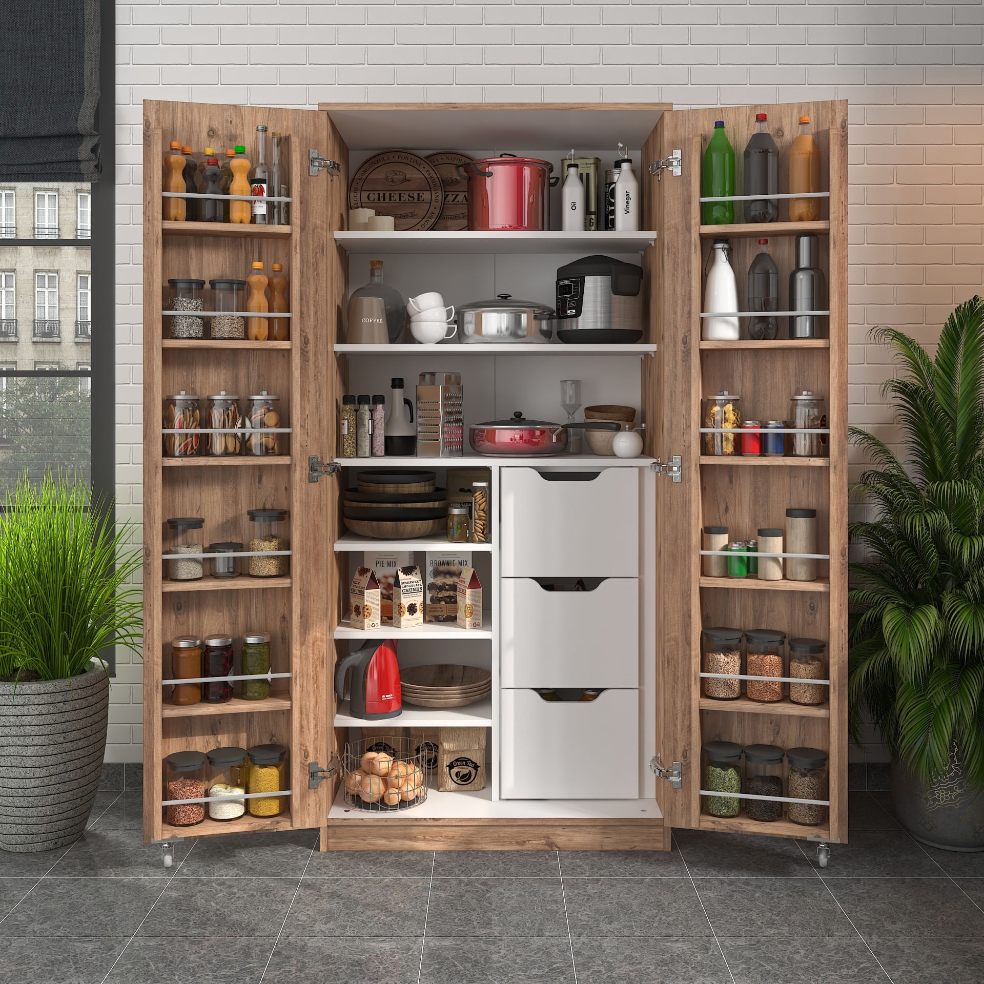 Depolama alanına mı ihtiyacınız var? Molina kiler dolabı geniş iç hacmiyle tam size göre. Kapak içlerindeki rafları sayesinde kavanoz gibi eşyalarınızı saklayabilir ve ihtiyacınız olduğunda rahatça ulaşabilirsiniz. Kapaklarındaki tekerlekler sayesinde kolayca açıp kapanabilen yapısı size konfor ve güvenlik sağlar.